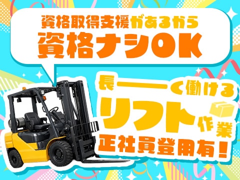 ★月収例30万円以上★リフト経験が浅くてもOK!正社員登用有/資格取得支援有