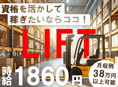 月収38万円以上可能◎経験不問!資格だけあればOK!! リフト作業!◆時給1860円◆