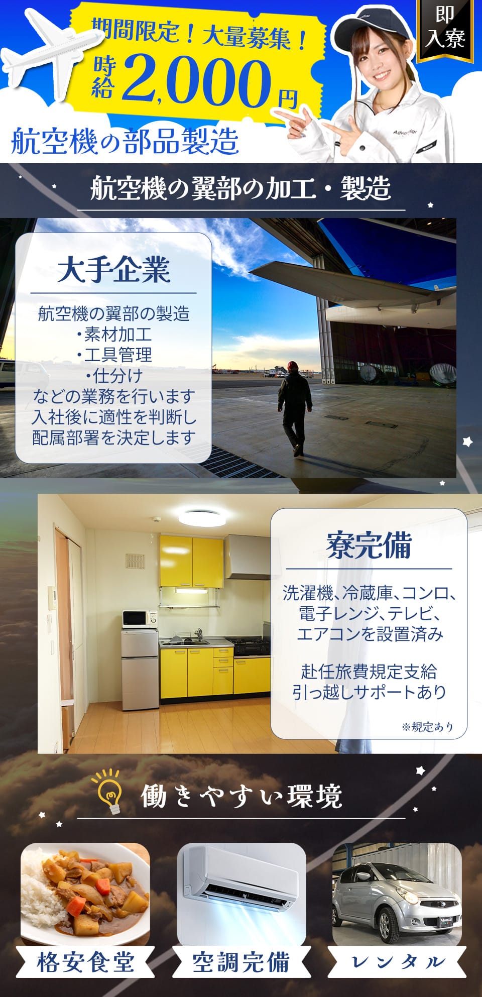 ★2月・3月入社限定⇒時給2,000円★緊急大量募集【航空機の部品製造】