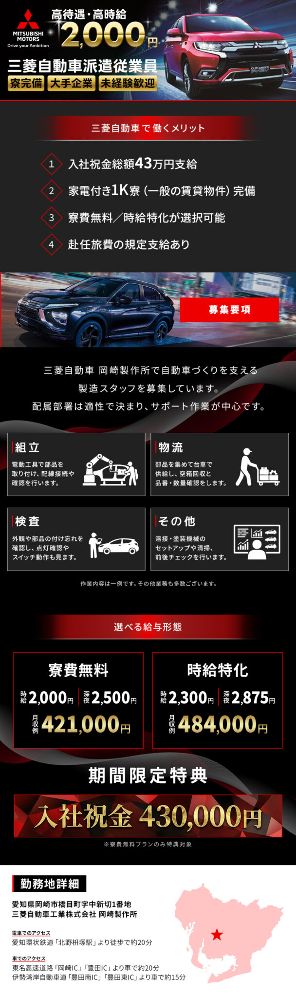 【大量募集】三菱自動車岡崎製作所で組立などの製造に関わる業務